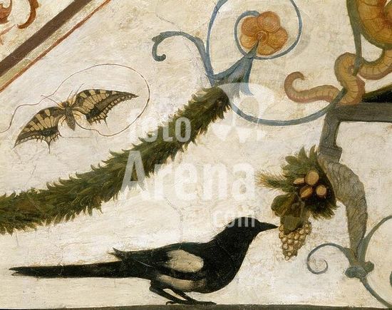 akg994493 Florence-Firenze (Tuscany, Italy), Palazzo Vecchio, 2nd floor, Quartiere di Eleonora da Toledo, Green room-Camera verde.-Detail from the ceiling painting with grotesques: Parrot.-Fresco, 1540/42, by Ridolfo Ghirlandaio (1483-1561).