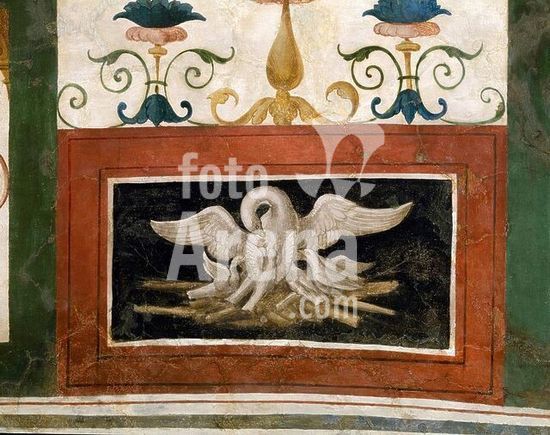 akg994497 Florenz-Firenze (Toskana, Italien), Palazzo Vecchio, 2.Geschoß, Quartiere di Eleonora da Toledo, Grünes Zimmer-Camera verde.-Ausschnitt aus der Deckenmalerei mit Grotesken: Pelikan.-Fresko, 1540/42, von Ridolfo Ghirlandaio (1483-1561).