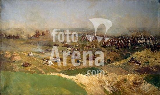 akg727073 Napoleonische Kriege / Russischer Feldzug 1812 / Schlacht bei Borodino (an der Moskwa), 7. Sept. 1812 (Sieg Napoleons über Kutusow). /-"Die Schlacht bei Borodino".-/ Teil des Panoramagemäldes (kleine Fassung), 1910, von Franz Alexejewitsch Roubaud (1856-1928). Öl auf Leinwand, 119,6 x 196,7 cm.