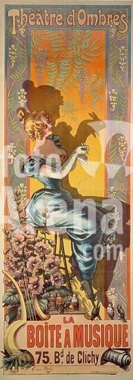 akg1663911 Redon, Georges; 1869-1943. "Théâtre d' Ombres. La Boîte à musique, 75 Bd de Clichy".-(Werbung für das Schattentheater in der Boîte a musique, Paris). Plakat, 1898. Farblithographie. 243 x 87 cm. Druck: Chaix, Paris. Museum: Private Collection., Privatsammlung.