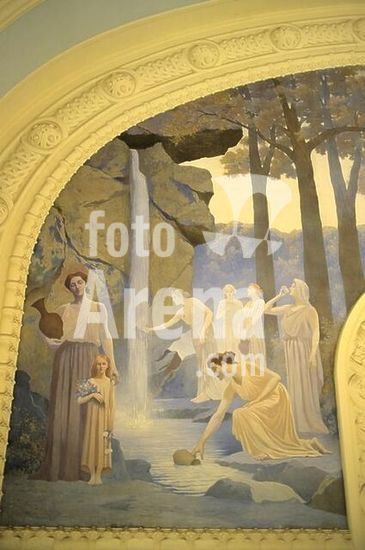 akg973832 Vichy (Dép.Allier, Auvergne, Frankreich), Centre thermal des Dômes (erbaut 1899-1903; Arch.: Charles Lecoeur), Trinkhalle.-"La Source" (Die Quelle)".-Ausschnitt aus dem Wandgemälde, 1903, von Alphonse Osbert (1857-1939). Foto, 2006.