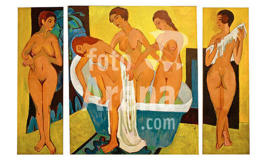 akg1417179 Kirchner, Ernst Ludwig 1880-1938. " Badende Frauen", 1915/25. Triptychon. Öl auf Leinwand, Mitteltafel: 196 x 171 cm. Davos, Kirchner Museum. Linke Tafel: 196 x 66 cm. Kunsthandel. Rechte Tafel: 196 x 66 cm. Schenkung Wilhelmina und Wallace F.Holladay, Ruth and Jacob Kainen, Washington D.C., National Gallery of Art.