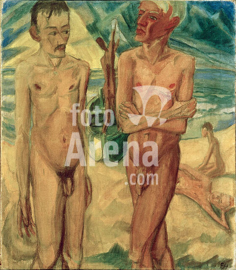akg915634 Heckel, Erich; 1883-1970. "Badende am Strand", 1916. Öl auf Leinwand, 80,5 x 70,5 cm. Museum: Private Collection., Privatsammlung.