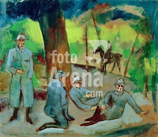 akg965710 Macke, Helmuth; German painter, 1891-1936. "Französische Kriegsgefangene" (French prisoners of war), 1916/ Gouache. Collection Frank Brabant.
