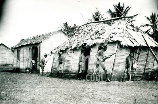 akg1089377 Geschichte / Dominikanische Republik. Besetzung durch die USA 1916-1924.-US-Marineinfanteristen durchkämmen Elendsquartiere in Santo Domingo.-Foto, um 1917.