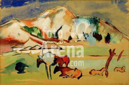 akg1029228 Macke, Helmuth 1891-1936. "Maultierrast in Mazedonien", 1919. Aquarell und Deckfarbe, 31 x 47 cm. Museum: Private Collection., Privatsammlung.