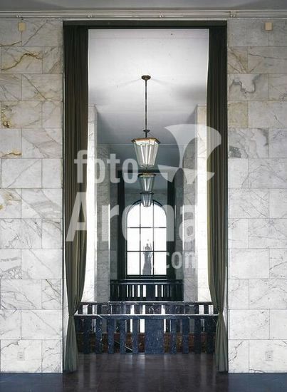 akg897070 Rome (Latium, Italy), Quartiere dell'EUR, Palazzo della Civiltà del Lavoro (built 1938-43; architects: Ernesto Bruno La Padula, Giovanni Guerrini and Mario Romano).-Interior view.-Photo, 2002.