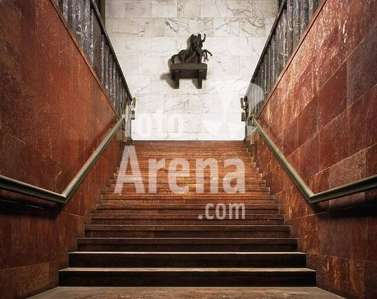 akg897074 Rome (Latium, Italy), Quartiere dell'EUR, Palazzo della Civiltà del Lavoro (built 1938-43; architects: Ernesto Bruno La Padula, Giovanni Guerrini and Mario Romano).-Interior view: staircase.-Photo, 2002.