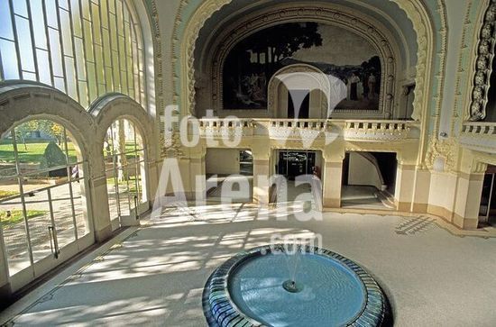 akg973828 Vichy (Dép.Allier, Auvergne, Frankreich), Centre thermal des Dômes (erbaut 1899-1903; Arch.: Charles Lecoeur).-Innenansicht der Trinkhalle mit Wandmgemälde, 1903, von Alphonse Osbert (1857-1939).-/ Foto, 2006.