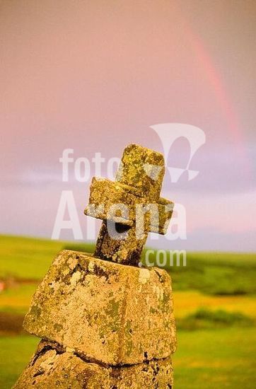 akg986102 Vassivière (Gemeinde Besse, Dép. Puyde-Dôme, Auvergne, Frankreich), Kapelle Chapelle Notre-Dame de Vassivière.-Steinkreuz bei der Kapelle.-Foto, 2006.