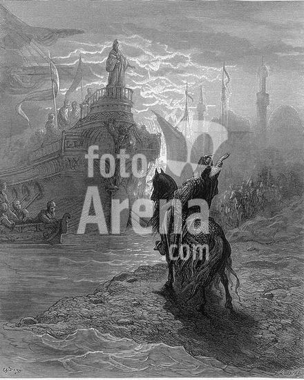 akg293152 Constantinople 1204: shortly before the conquest of the city by the crusaders of the 4th crusade on 13 April 1204. "Murzuffle parlemente avec Dandolo". (Alexios V of Byzantium and the Doge Enrico Dandolo). Wood engraving after Dore (1832-83) Fr:. J.Michaud, Histoire des croisades, Paris. 1877, Bd. 1, Taf. after p. 348. Author: GUSTAVE DORÉ.