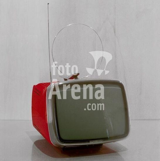 akg445774 Fernsehen:. Fernsehempfänger. Tragbares Fernsehgerät, Modell "Algol". Designer: Marco Zanuso, Richard Sapper, 1964. Hersteller: Brionvega, 1965. Front Kunstglas, Gehäuse Kunststoff und Metall. Sammlung Triennale di Milano. Inv. Nr. 0323. Mailand, Politecnico di Milano. Museum: Milan, Politecnico di Milano. Copyright: Additional copyrights must be cleared.