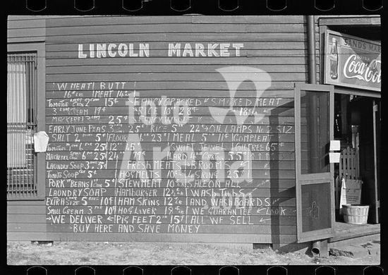 akg4821088 Handel / Gemischtwaren. Gemischtwarenladen "Lincoln Market" in den USA, möglicherweise in Winston-Salem (North Carolina). Foto von Walker Evans. Entstanden 1935 im Rahmen seiner von der Resettlement Administration (RA; ab 1937 Farm Security Administration (FSA)) in Auftrag gegebenen Fotodokumentation über die Armut der Landbevölkerung, v.A. im sog. Dust Bowl, während der Great Depression sowie über die Errungenschaften des New Deal.