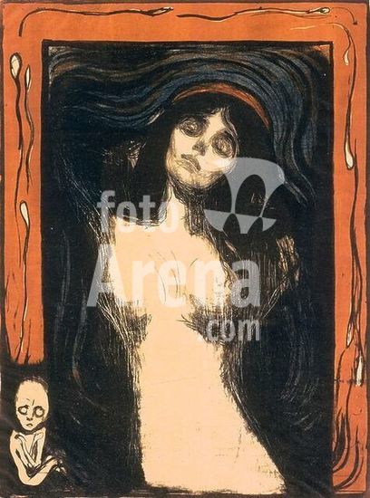 akg051771 Munch, Edvard 1863-1944. "Madonna". Lithograph, 1895. Reworked with crayon and brush in four colours, 1902. 60.5 × 54.2cm. Munich, State Collection of Prints / Drawings. Museum: München, Staatliche Graphische Sammlung. Copyright: Additional copyrights may need to be cleared on this image when licensed for use by clients in the USA. Please contact us for additional information.