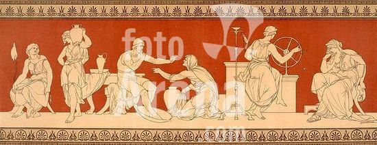 akg081388 Preller, Friedrich, the Elder. 1804-1878. "Odysseus recognized by Eurycleia". (Homer, Odyssey XIX, 386-393, 467-507). Colour lithograph after the base picture of the Odyssey cycle, Museum in Weimar. From: Friedrich Prellers Figuren-Fries zur Odyssee, edited by Max Jordan, Leipzig (Alphons D}rr) 1875. Taf. XVIII. Berlin, Sammlung Archiv für Kunst und Geschichte. Museum: Berlin, Sammlung Archiv für Kunst und Geschichte.