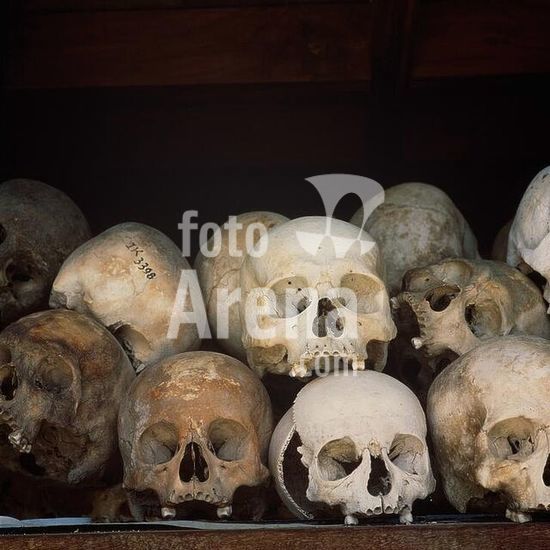 akg113624 History of Cambodia / reign of terror under Pol Pot (1976-79 Prime Minister). and the Khmer Rouge (Communist guerilla troops) 1975-79. Memorial for the victims of the Khmer Rouge in Phnom Penh: Skulls. Photo, 1992 © AKG / Henning Bock.