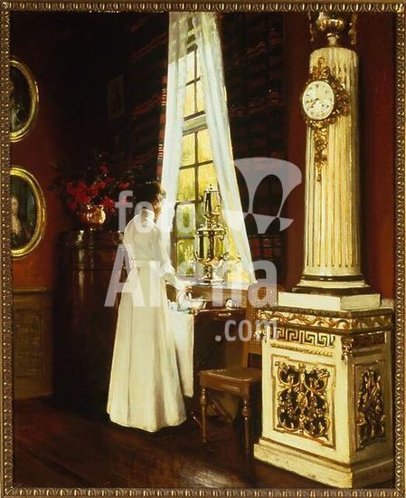 akg2036347 Slott-MÖller, Harald, 1864-1937, Danish painter. "Morgenkaffen" (Morning coffee), 1914. Oil on canvas, 83.8 x 66 cm. London - Sotheby's, 27th November 1991, lot 72.