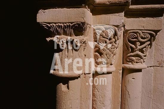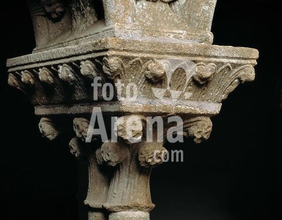 akg1577115 Poblet (Katalonien, Spanien), Kloster-Monasterio Sta. Maria de Poblet ( Zisterzienserkloster, gegr.1151; erb. bis Ende 14.Jh.), Kreuzgang ( 12./13.Jh.).-Kapitelle.-Foto, undat. (1990er Jahre).