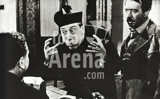 akg4446297 Fernandel (Fernand Contandin, 1903-1971) plays Don Camillo in the series of films about the novels of the writer Giovanni Guareschi (1908-1968). With him Umberto Spadaro (1904-1981) in the role of Bezzi and back, the great Gino Cervi (1901-1974), Peppone unforgettable. Scene from the movie 'Don Camillo and Peppone Mr', 1955.