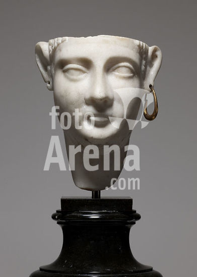 akg4787389 Cleopatra III, c.160-101 BC, a queen of Egypt (Ptolemaic Dynasty). (She ruled at first with her mother Cleopatra II and husband Ptolemy VIII from 142 to 131 BC and again from 127 to 116 BC. She then ruled with her sons Ptolemy IX and Ptolemy X from 116 to 101 BC). Head of Cleopatra III as Isis. Marble head with gold earring, 2nd Century BC. Landesmuseum Württemberg, Stuttgart, Germany.
