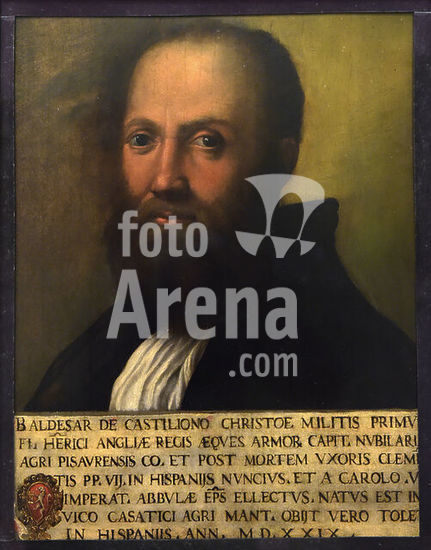 akg5542043 Portrait of Baldassare Castiglione by Raphael.By Giulio Romano (Giulio Pippi) (1499-1546)Panel (inv. 876)National Gallery of Ancient Art (Galleria Nazionale d'Arte Antica) - Palazzo Barberini - Rome, Italy - 2017.