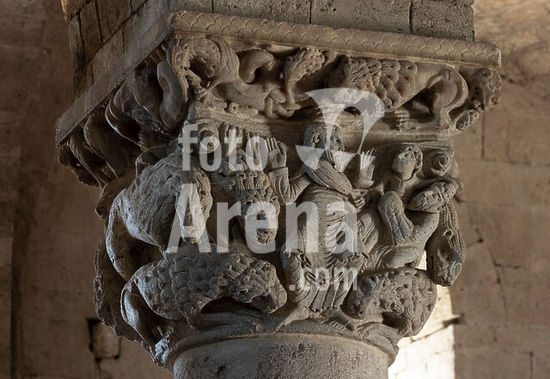 akg7877287 Sant' Antimo, Abbazia, Benediktinerabtei, Innenraum, Kapitell: Daniel in der Löwengrube.