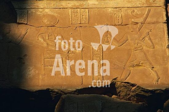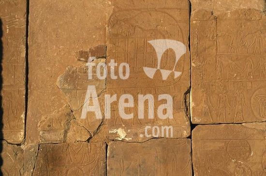 akg999460 Hibis / Hiblet (Oase Kharga/Charga, Westliche/Libysche Wüste, Ägypten), Amun-Tempel (Spätzeit, 26.Dynastie, 6.Jh.v.Chr.; in der Perserzeit unter Darius I. und Darius II. dekoriert; unter Nektanebos I. u.II (30.Dynastie, 4.Jh.v.Chr.erweitert). /-Ausschnitt aus den Reliefs: Der Pharao opfernd vor Göttern.-/ Foto, 2006.