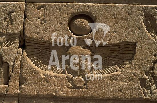 akg1000273 Idfu / Edfu (Oberägypten), Horustempel (begonnen 237 v.Chr. unter Ptolemaios III. Euergetes I.; abgeschlossen 57 v. Chr. unter Ptolemaios XII. Neos Dionysos). /-Geflügelter Skarabäus mit Sonnenscheibe.-Relief. Foto, undatiert.