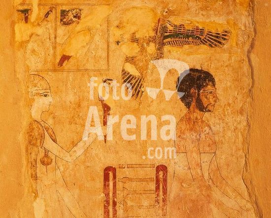 akg867192 Egyptian, New Kingdom, 19th dynasty.-Horus and a deceased.-Wall painting from the tomb of a royal official. Western Thebes, Dra Abul'-Naga.