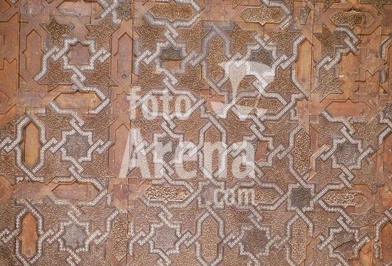 akg1909979 Islamisch, hergestellt in Cordoba ( Spanien), Almoraviden-Zeit, 1137.-Minbar (Kanzel) aus der Koutoubia-Moschee in Marrakesch, Marokko.-/ Ausschnitt: Sternflechtornamentik. Zedernholz, Ebenholz, Elfenbein, Höhe 3,86 m. Marrakesch, Palais el Badi.