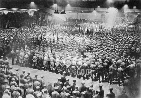 akg1194086 Deutschland / NS-Zeit 1933-45 / Appell von SA und SS vor Adolf Hitler im Berliner Sportpalast, 8. April 1933.-Blick in den Sportpalast mit angetretenen Formationen.-Foto.