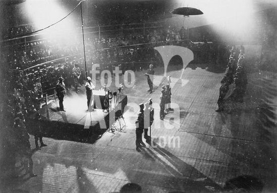 akg1194087 Deutschland / NS-Zeit 1933-45 / Appell von SA und SS vor Adolf Hitler im Berliner Sportpalast, 8. April 1933.-Rede Hitlers.-Foto.