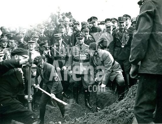 akg1345858 Germany / National Socialism 1933-1945 / construction of the first Reichsautobahn between Frankfurt am Main, Darmstadt and Mannheim, start of construction on 23.9.1933.-Hitler during the ceremony of turning the first sod.-Photo, 1933.