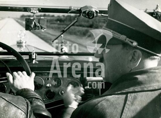 akg1348607 Hitler, Adolf; Politiker (NSDAP); Braunau 20.4.1889-(Selbstmord) Berlin 30.4.1945.-Hitler bei einer Fahrt über die Reichsautobahn (Einweihung eines Teilstücks(?)).-Foto, 1936.