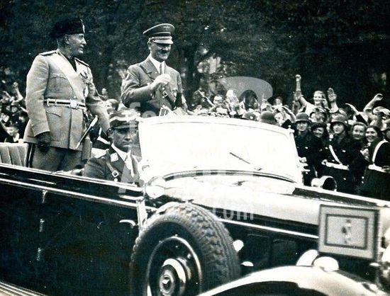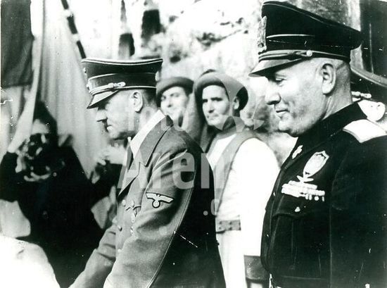 akg1348560 Benito Mussoli, Italian Prime Minister, during his visit to Munich, Germany, 25.-29.9.1937.-Mussolini (left) accompanied by Adolf Hitler take the salute of the guard of honour after Mussolini's arrival at Munich's main railway station. (behind Mussolini to the left is Wilhelm Keitel) .-/ Photo, 25.9.1937.