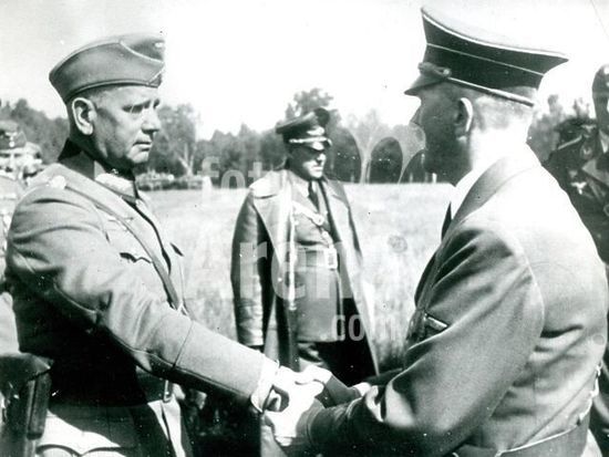 akg1348570 History / World War II / Invasion of Poland by the German Wehrmacht, 1.9.-6.10.1939.-Hitler greets the commander in chief of the 10th Army, Walter von Reichenau (left).-Photo, 21.9.1939.