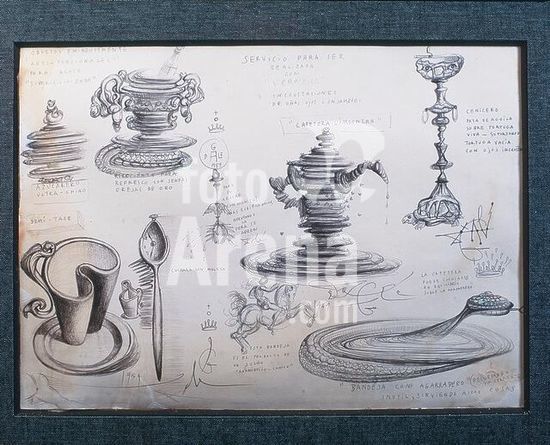 akg1691458 Dalí, Salvador; 1904-1989.-Antifunktionelle Gegenstände.-Zeichnung 1959. Collection Mafalda Davis, Paris.