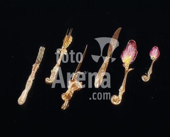 akg1674430 Dali, Salvador; 1904-1989.-Besteck.-Entwurf: 1965. Silber, feuervergoldet. Collection Mafalda Davis, Paris.