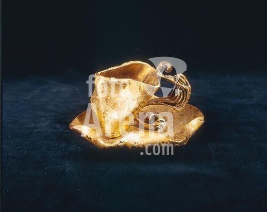 akg1674505 Dali, Salvador; 1904-1989.-Tasse und Untertasse.-Bronze, blattvergoldet. Entwurf: 1965. Collection Mafalda Davis, Paris.