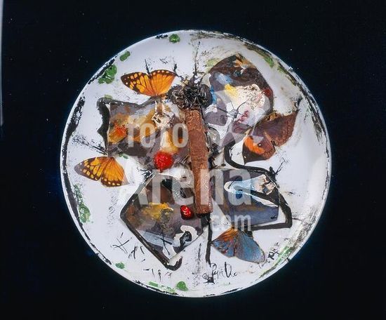 akg1674545 Dalí, Salvador; 1904-1989.-Porzellanteller mit Schmetterlingen und echter Zigarre, 1965.-Collection Mafalda Davis, Paris.