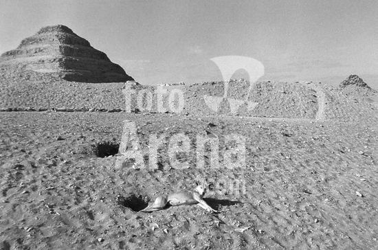 akg916461 Saqqara (Egypt), necropolis of Djoser, Djoser's step pyramid (old kingdom, 3rd dynasty, ca.2680 BC)-Desert landscape with Djoser's step pyramid.-Photo, 1992.