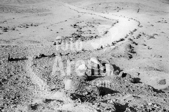 akg916503 Beni Hassan (Mittelägypten), (39 Felsengräber des Mittleren Reichs, 11.-12.Dynastie; um 2025-1794/93 v.Chr.).-Mit Steinen markierter Weg durch die Wüste nach Beni Hassan.-Foto, 1992.