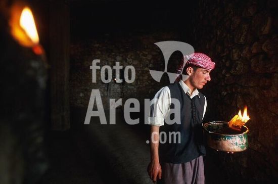 akg898349 Religion / Jesidismus od. Yezidentum (verbreitet ausschließlich unter den Kurden).-Feuer-Zeremonie im jesidischen Heiligtum Lalisch (Kurdistan, Irak).-Foto, undat.