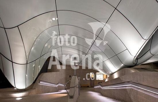 akg1063223 Innsbruck (Tirol, Österreich), Hungerburgbahn (Standseilbahn, Neubau, Inbetriebnahme 2007; Arch.: Zaha Hadid).-Teilansicht: Station Hungerburg, innen.-Foto, 2009.