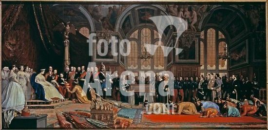 akg016051 Napoleon III, Emperor of the French, (1852-70); 1808 - 1873. "Reception of the Siamese legation by Napoleon III at Fontainebleau". Painting, 1865, by Jean Leon Gerome. (1824-1904). Versailles, Château et Trianons. Museum: Versailles, Château et Trianons.