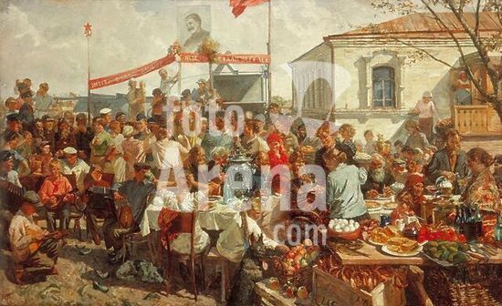 akg129927 Plastov, Arkadiy Alexandrovich. 1893-1972. "Kolkhoz Festival" (Harvest Festival) 1937. Oil on canvas, 188 × 307cm. St Petersburg, Russian State Museum. Museum: St. Petersburg, Russian Museum. Author: ARKADIJ ALEXANDROWITSCH PLASTOW. Copyright: © Arkady Alexandrovich Plastov. This artwork is not in the public domain. It is your responsibility to obtain all necessary third party permissions from the copyright handler in your country prior to publication.