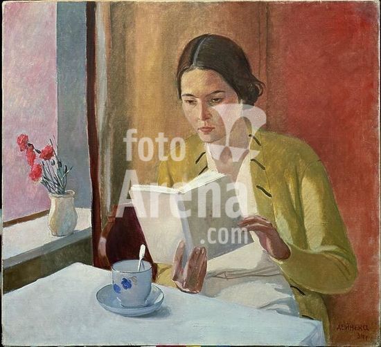 akg235136 Deineka, Alexander Alexandrovich. 1899-1969. "Young Woman with Book", 1934. Paintng. St Petersburg, Russian State Museum. Museum: St. Petersburg, Russian Museum. Author: ALEXANDER ALEXANDROWITSCH DEINEKA. Copyright: © Aleksandr Aleksandrovich Deyneka. This artwork is not in the public domain. It is your responsibility to obtain all necessary third party permissions from the copyright handler in your country prior to publication.