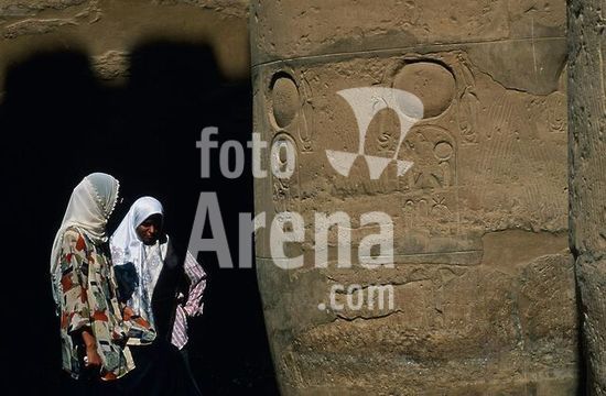 akg1038969 Luxor-Luksor-El-Uksur (Oberägypten), Amun-Tempel (Neues Reich, 18.Dynastie; erbaut um 1370 v.Chr. unter Amenophis III., erweitert unter Ramses II. um 1260 v.Chr.).-Zwei Ägypterinnen bei der Besichtigung des Tempels.-Foto, undatiert.