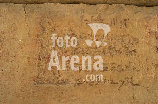 akg1039899 Theben-West (Oberägypten), Deir el-Bahari, Terrassentempel der Hatschepsut (Totentempel der Königin Hatschepsut; Neues Reich, 18.Dynastie, um 1470 v.Chr.; Arch.: Senenmut), Hathor-Kapelle. /-Männliche Figur und Inschrift.-Foto, undatiert.