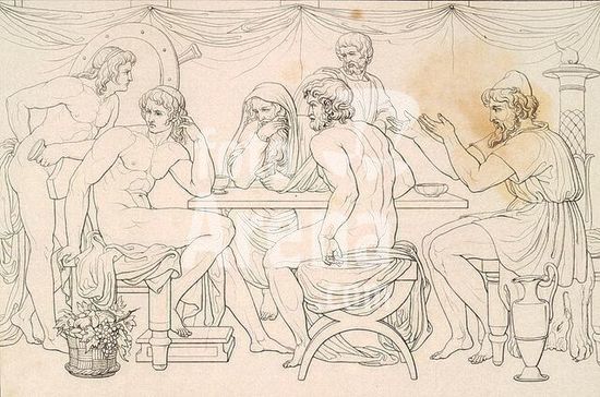 akg177925 Genelli, Bonaventura. 1798-1868. Les héros dans la tente d'Achille. Croquis. In : Croquis de B. Genelli's pour Homère avec commentaires du Dr. Ernst Förster, Stuttgart et Tübingen. (éd. J.G. Cotta'scher Verlag) 1844, planche 10. Berlin, Sammlung Archiv für Kunst und Geschichte. Museum: Berlin, Sammlung Archiv für Kunst und Geschichte.